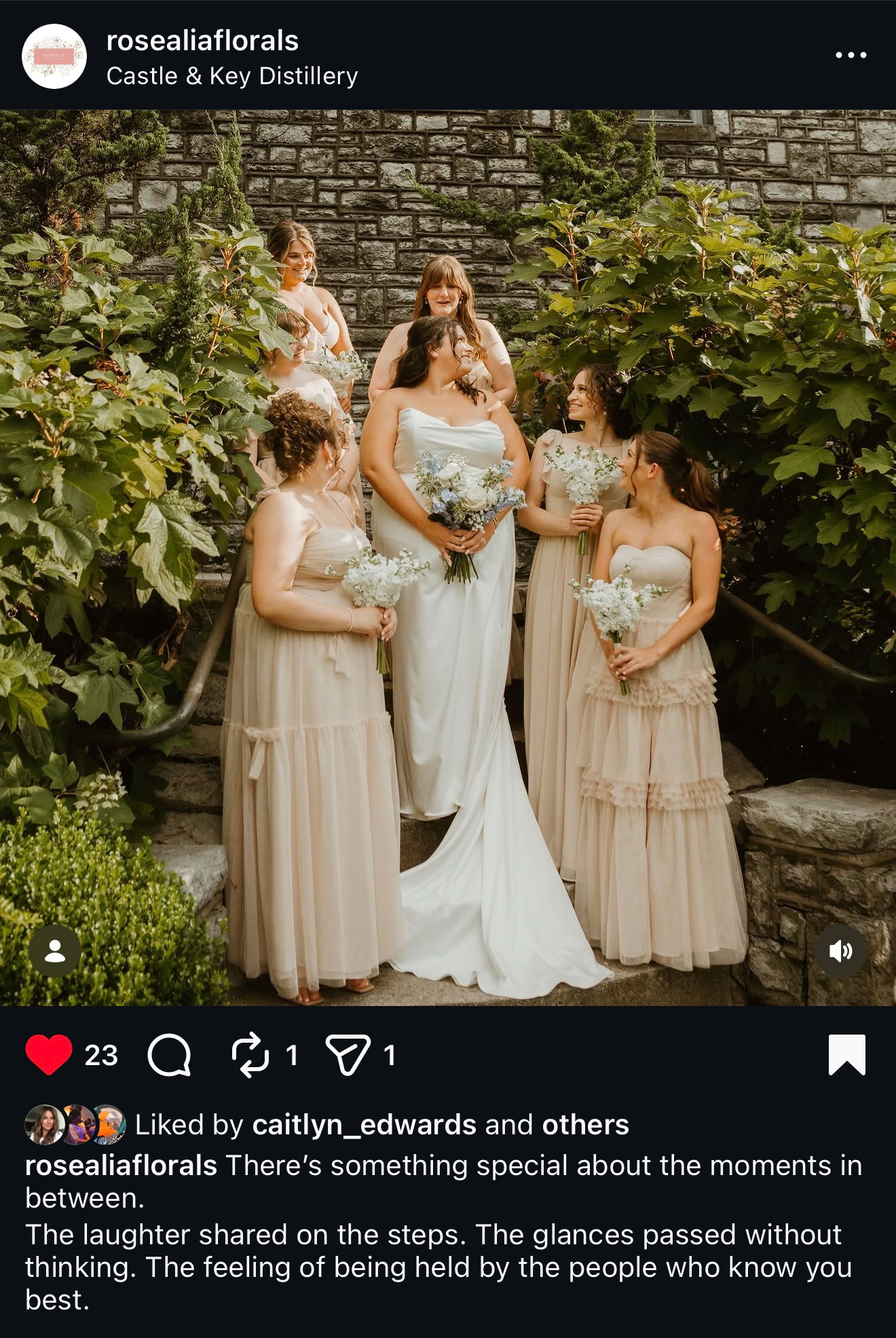 Roséalia Floral Design Studio is a Kentucky-based luxury floral brand specializing in elevated wedding and event design. With a strong emphasis on refined aesthetics and custom installations, Instagram serves as the primary channel for attracting and converting prospective clients.