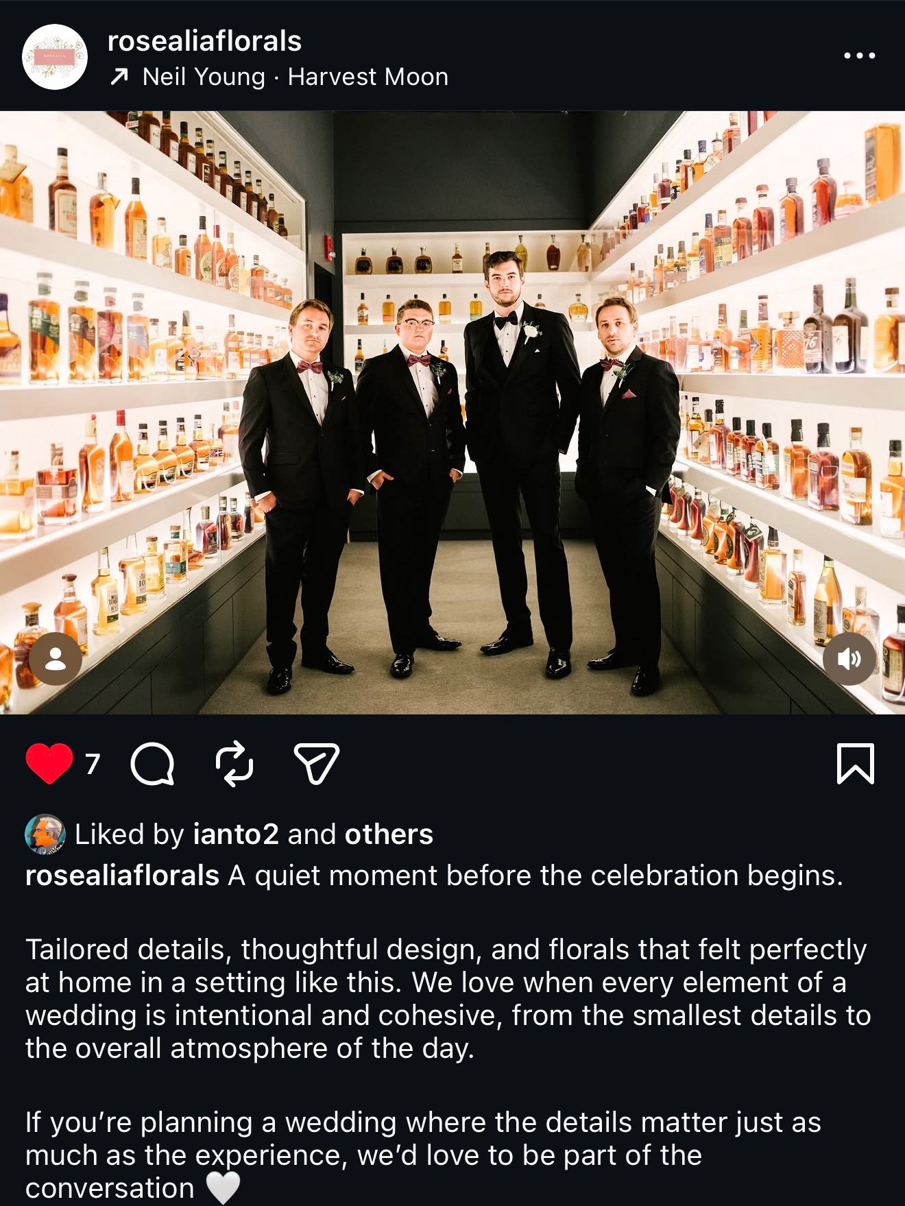 Shift Roséalia’s social presence from a static portfolio into a relationship-driven marketing channel, using content to build trust, differentiate from competitors, and attract high-intent wedding clients.